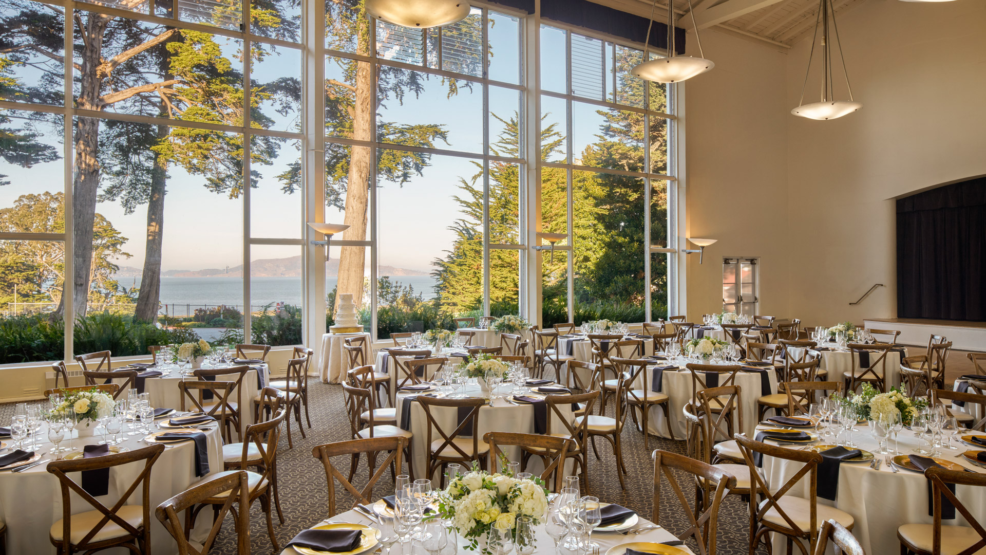 Built in 1949, the Golden Gate Club was once the enlisted men's service club and the site of several historic treaty signings. Today, it is the Main Post's most popular celebration and meeting venue. It boasts floor-to-ceiling windows with views of the San Francisco Bay, the Golden Gate Bridge, Alcatraz, and the Presidio forest. Encompassing seven event rooms of varying sizes, the Golden Gate Club can be arranged to suit any occasion. The outdoor courtyard and balcony are beautiful additions to the Golden Gate Club, providing intimate reception and cocktail hour locations for any event.