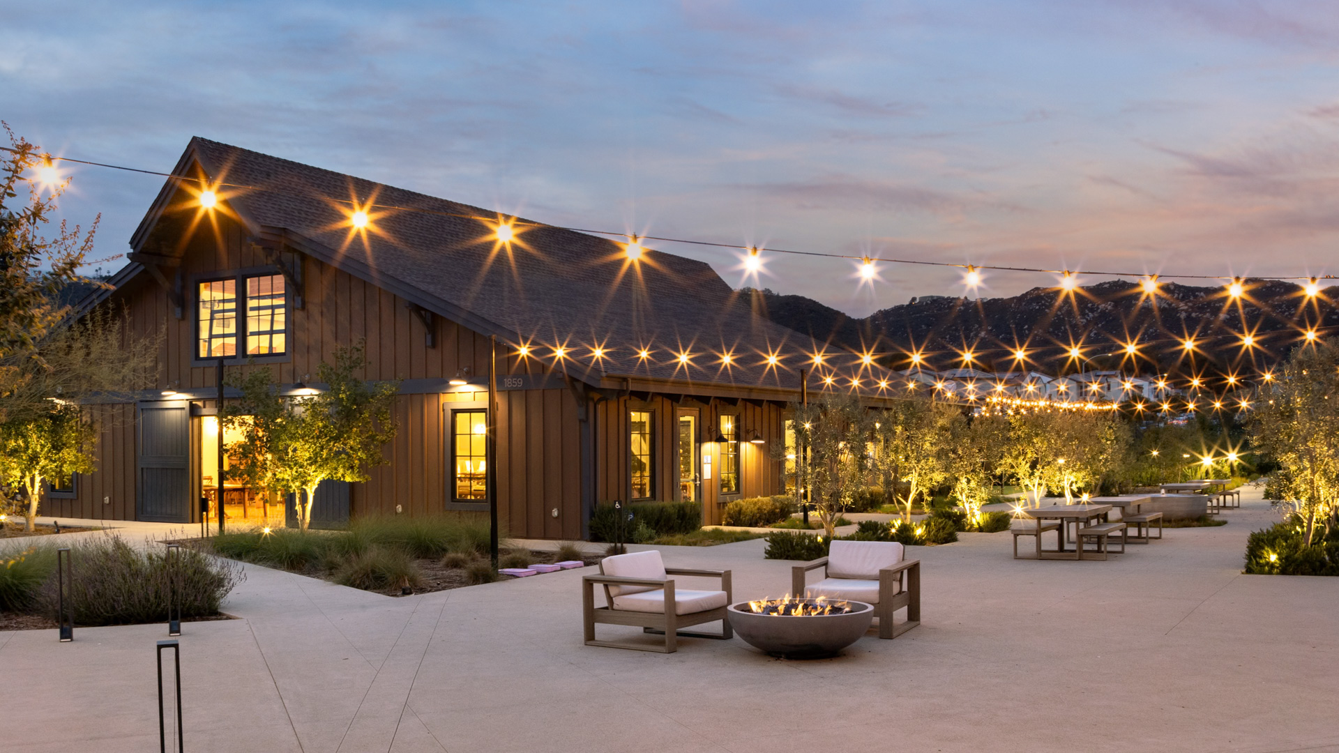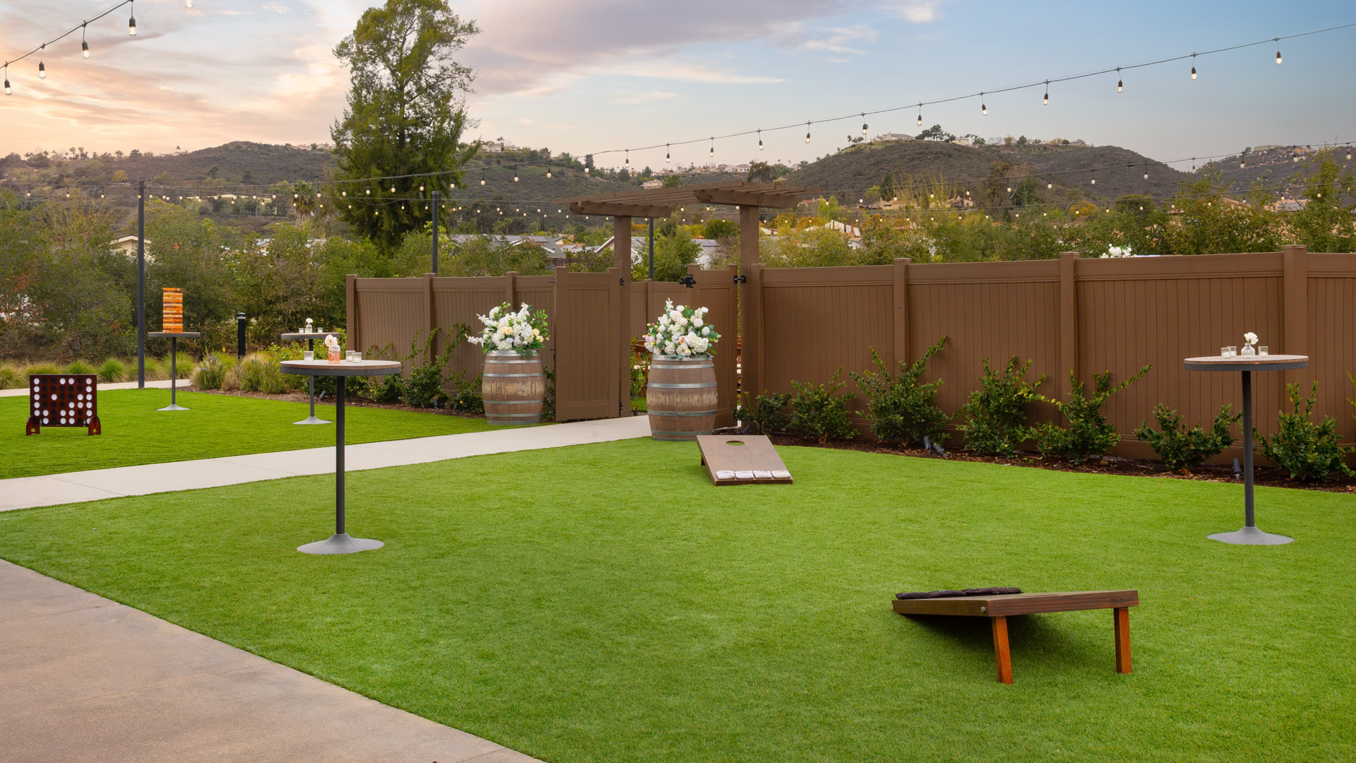 - Picturesque, versatile lounge area with bistro lights and beautifully landscaped cocktail gardens