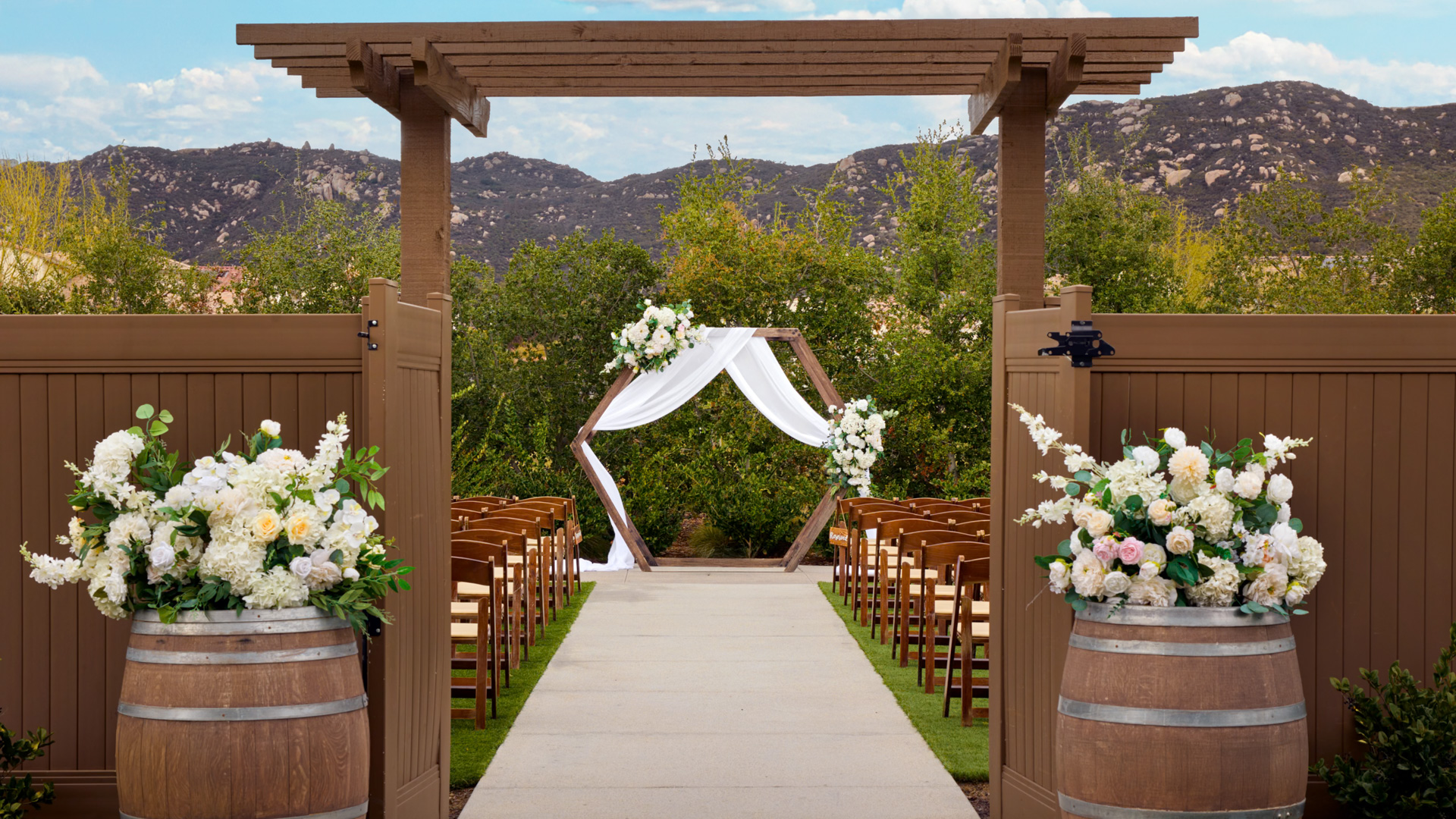 Canopy Grove by Wedgewood Events is a refreshing event location nestled in north San Diego County. When selecting this splendid venue, you can rest easy, enjoy the planning process, and host an astounding event that will stun your guests. The quiet town of Escondido is conveniently situated 30 miles northeast of San Diego and 15 miles from the sea. Abundant olive, walnut, orange, lemon, and avocado orchards thrive here alongside unrefined chaparral and oak woodlands. Its Mediterranean-like climate, characterized by mottled shade and gentle breezes, makes this venue a true jewel.