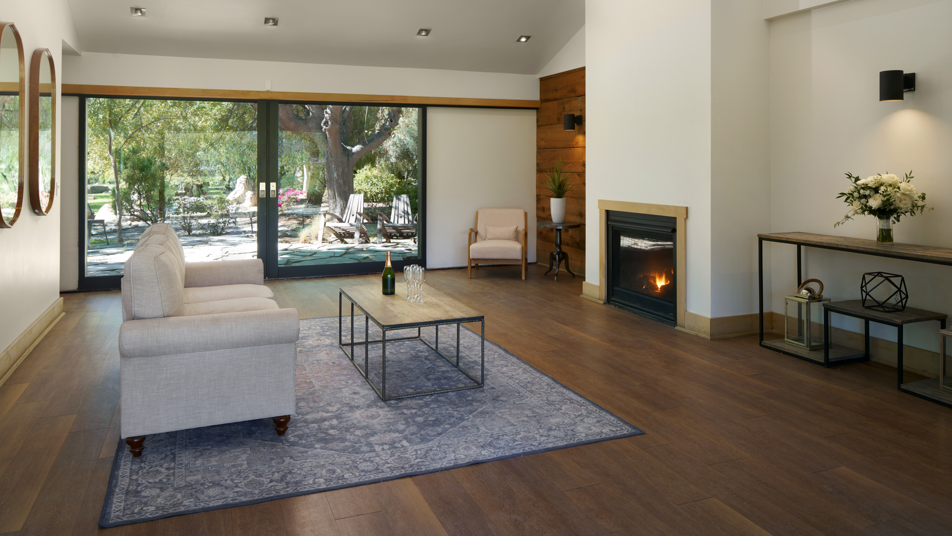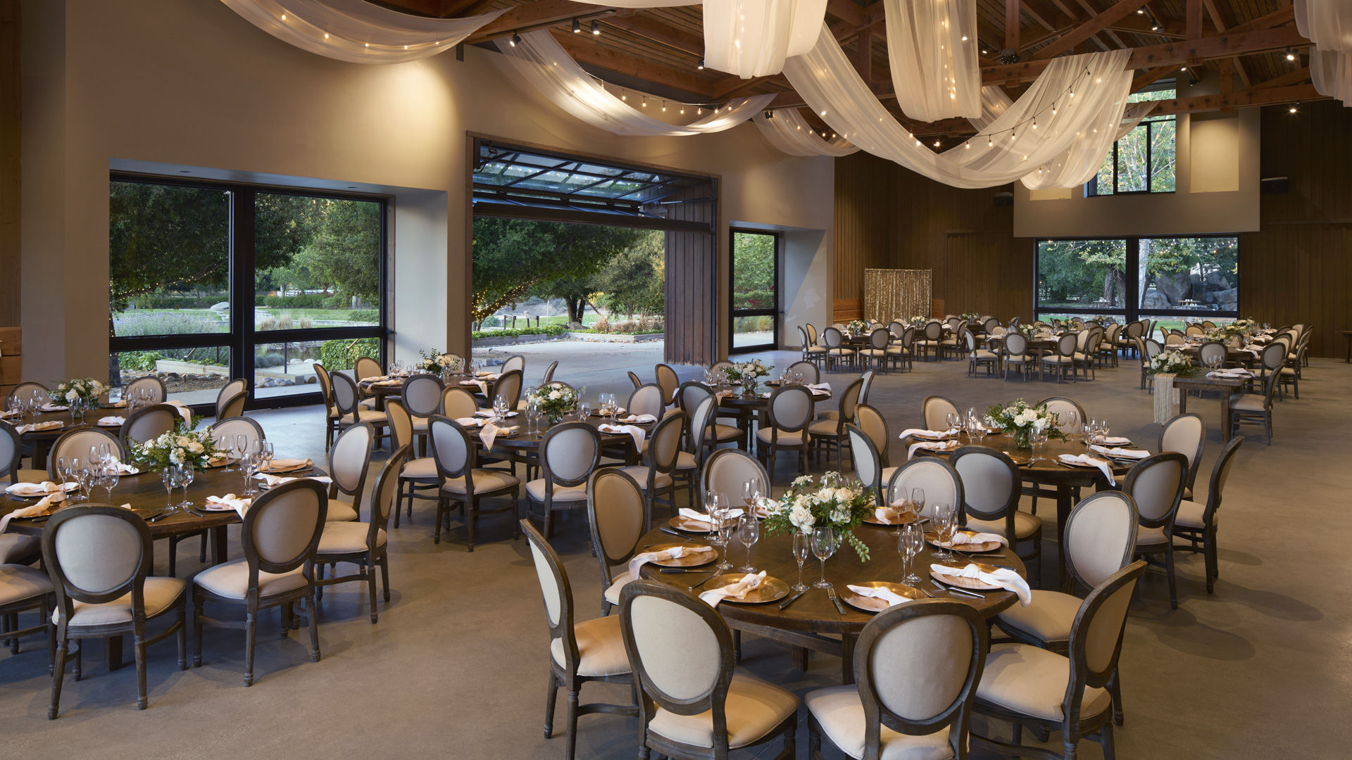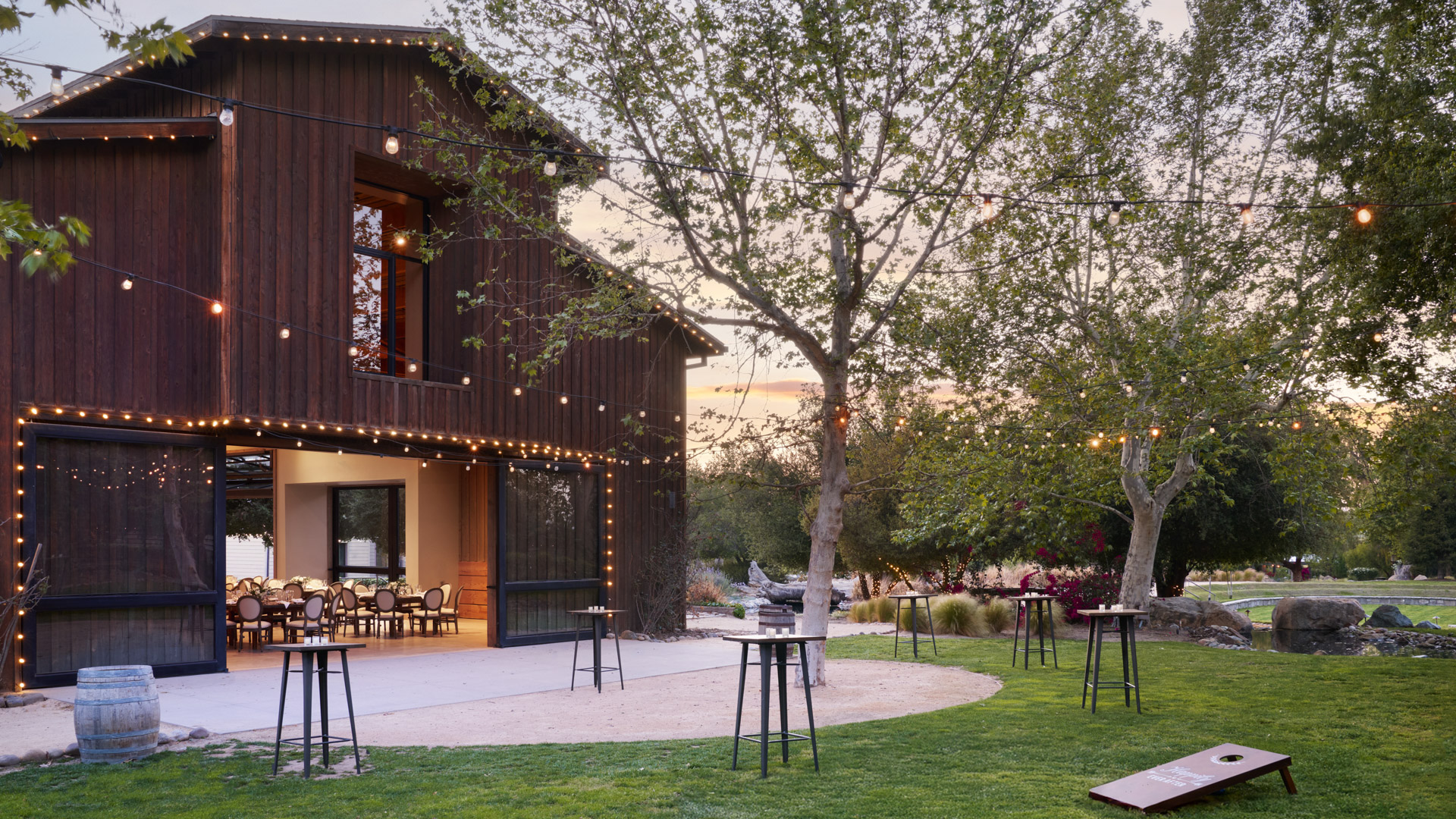 Enjoy a luxe reception in the modernized barn we call the "Carriage House," featuring a stately built-in bar, double-sided fireplace, and expansive garage doors that open to the outdoors, seamlessly blending the interior with the beauty of nature surrounding it. The Carriage House boasts beautiful draping with bistro lighting and oversized windows that allow for ample natural light. The space exudes a rustic yet elegant atmosphere with its polished concrete floors, exquisite stonework, and woodwork. With plenty of space for dancing, this versatile Temecula event center boasts a range of indoor and outdoor event areas for every type of gathering. Your guests will be completely wowed, wondering how you pulled it off - but you'll know how easy it really was.
