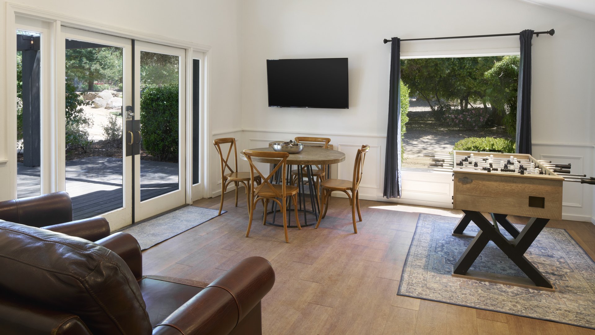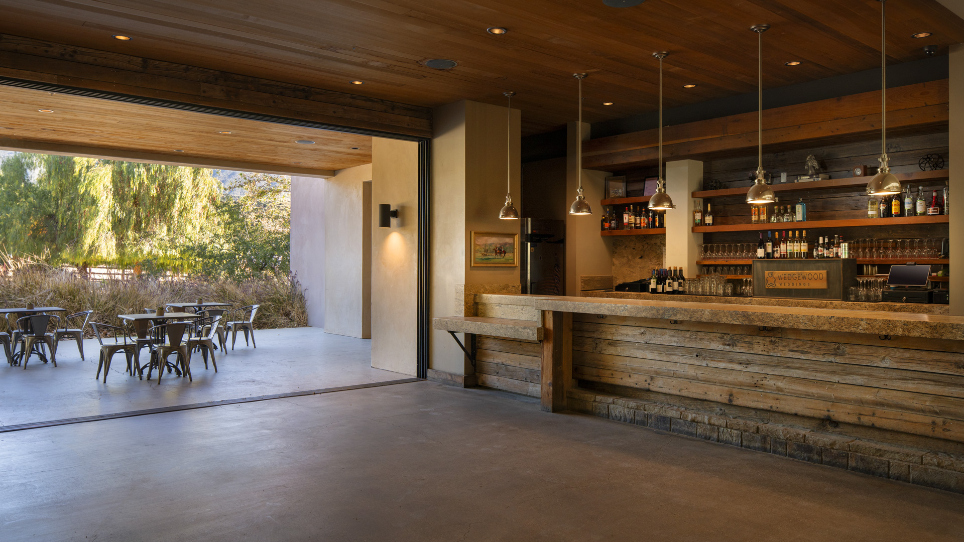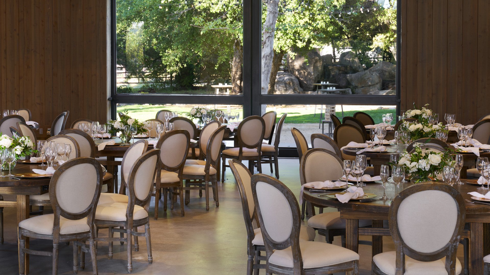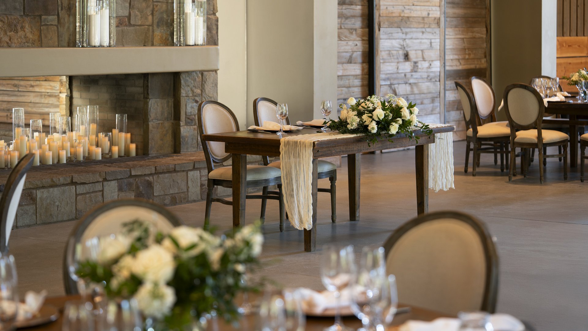 Enjoy a luxe reception in the modernized barn we call the "Carriage House," featuring a stately built-in bar, double-sided fireplace, and expansive garage doors that open to the outdoors, seamlessly blending the interior with the beauty of nature surrounding it. The Carriage House boasts beautiful draping with bistro lighting and oversized windows that allow for ample natural light. The space exudes a rustic yet elegant atmosphere with its polished concrete floors, exquisite stonework, and woodwork. With plenty of space for dancing, this versatile Temecula event center boasts a range of indoor and outdoor event areas for every type of gathering. Your guests will be completely wowed, wondering how you pulled it off - but you'll know how easy it really was.
